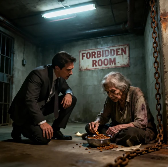 The image of his mother appeared on the screen—chained, thin, shivering, eating from the dog’s bowl.