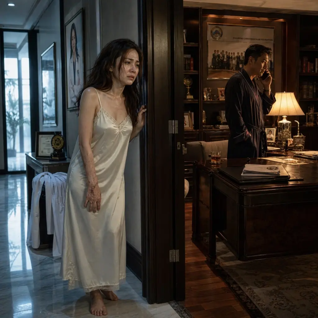 Bumangon siya at dahan-dahang naglakad palabas ng kuwarto. Hubad ang paa niya sa marmol na sahig. Tahimik ang buong bahay, maliban sa manipis na guhit ng ilaw na lumalabas sa siwang ng pintuan ng study room.