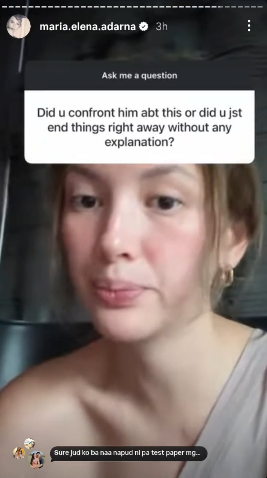 “To be honest dai, no. Kasi during the relationship din I was made to believe that this side chick was just a friend. That what I felt was not real and I was just acting jealous or crazy.” The actress said she was told she was merely acting jealous or irrational and discovering the alleged cheating weeks ago made her feel validated.