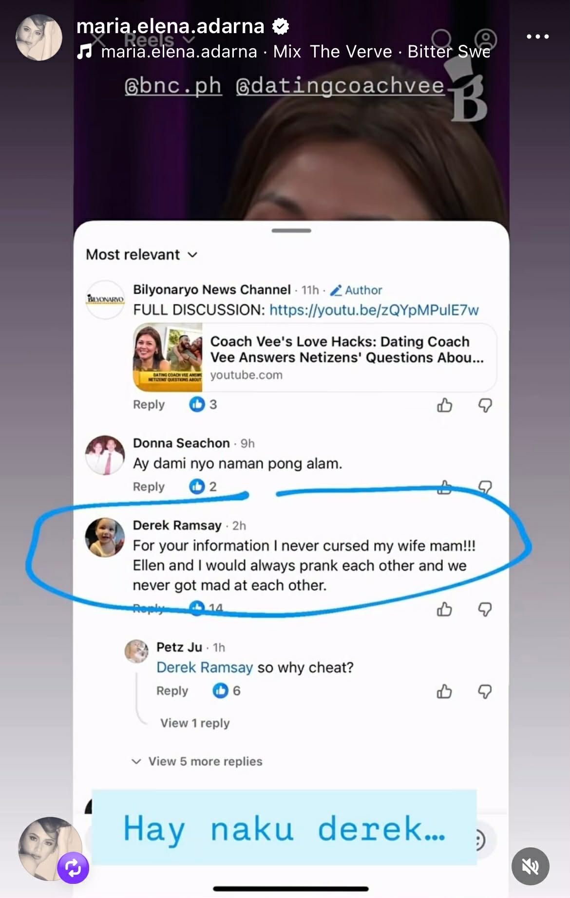 In the clip, Derek can be heard allegedly saying: “Napakaduwag mo! Puro ka lang salita. Iyan ang problema sa iyo. Go away! You, go avoid every f**king conflicts in life!”
