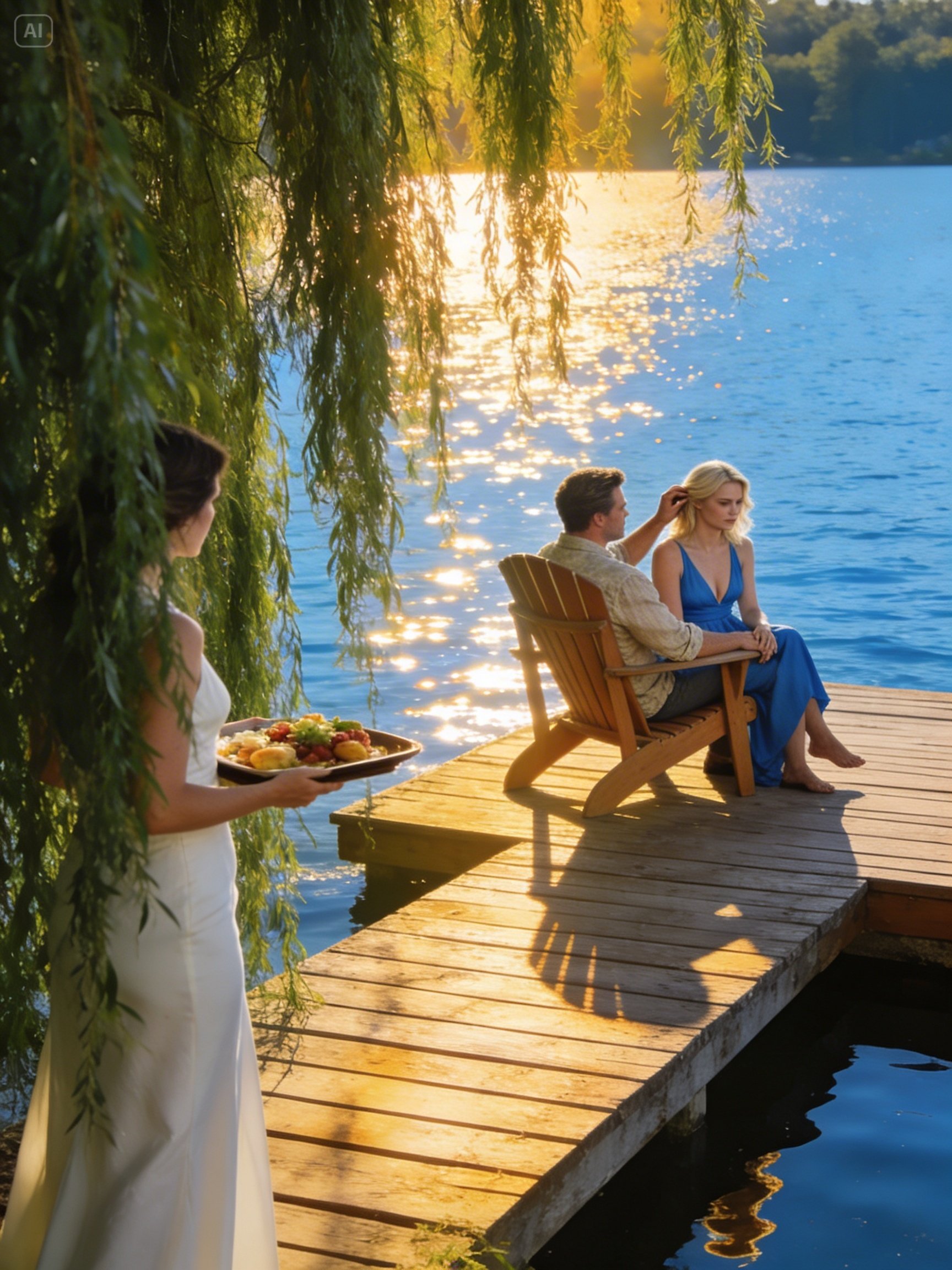 Brett sat in one of the oversized deck chairs, his fishing gear abandoned against the railing. A woman with long blonde hair sat on his lap, her arms draped around his neck. She wore a blue sundress that matched the lake behind them. They were talking softly, intimately, and I watched as Brett tucked a strand of her hair behind her ear with the same gentle gesture he used to do with me.
