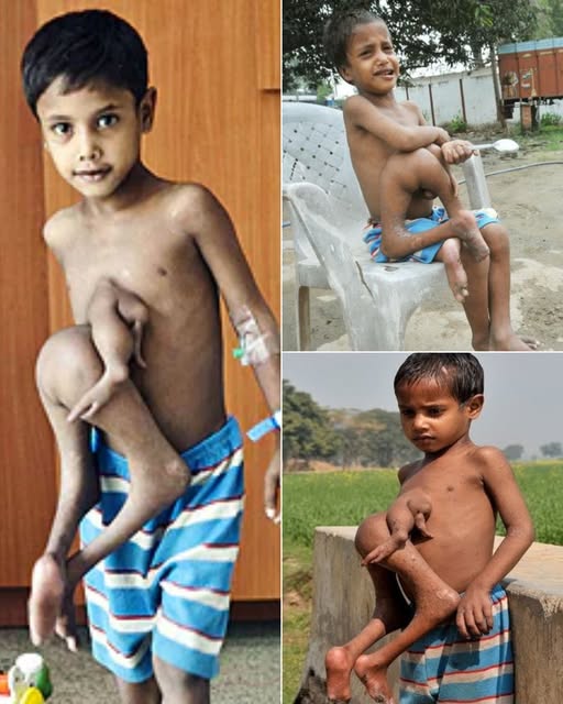 Attached to his abdomen and lower spine were four tiny limbs, curled and motionless, belonging to the underdeveloped twin who had never fully formed. The limbs dangled from Deepak’s body as if frozen in time — a biological echo of the sibling who didn’t survive the womb.