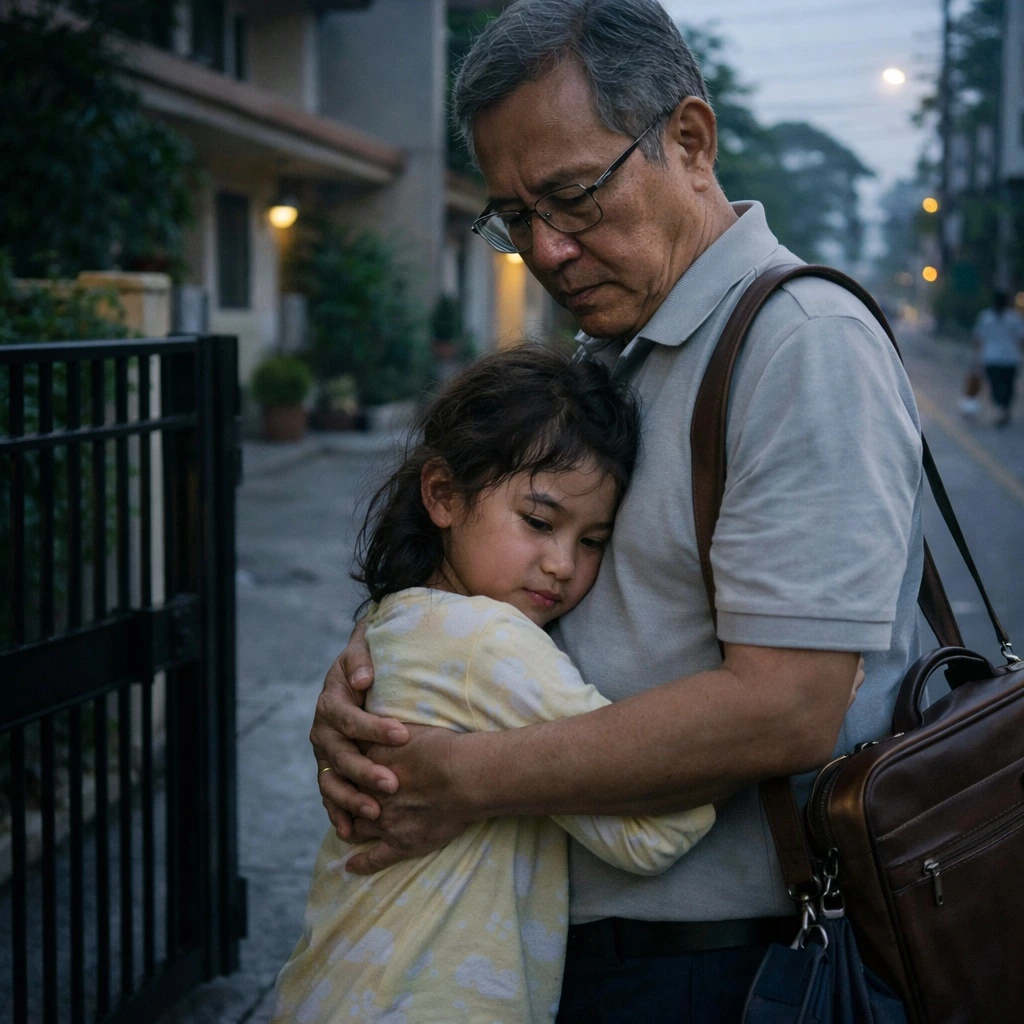 Nasalo ko siya sa labas ng gate at mahigpit siyang yumakap sa leeg ko, parang gusto niyang siguraduhin na hindi rin ako mawawala. Ramdam ko ang mahabang hingang inilabas niya sa balikat ko—iyong tipong ilang oras nang nakakulong sa dibdib.