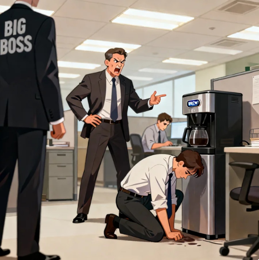 INUTUS-UTUSAN AT HINAMAK ANG BAGONG EMPLEYADO — PERO NANG DUMATING ANG “BIG BOSS,” NAPALUHOD ANG MANAGER SA HARAP NG KANYANG TAGA-TIMPLA NG KAPE
