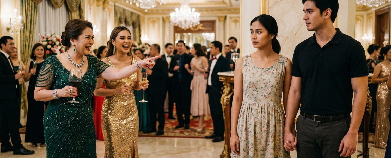 Pagpasok namin sa grand ballroom, pinagtitinginan na kami ng mga mayayamang bisita. Agad na sumalubong sina Doña Matilda at Bianca, hawak ang kanilang mga mamahaling wine glasses at tumatawa nang malakas.