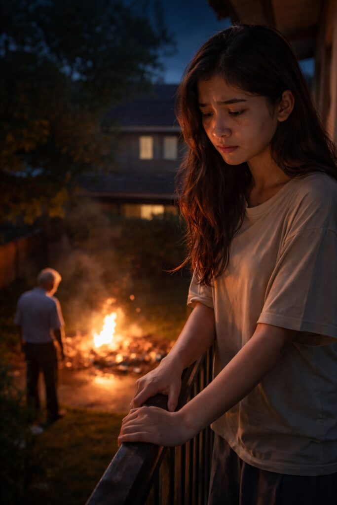 Tahimik siyang umiiyak habang nakatanaw sa ibaba — sa eksenang sinusunog ng kanyang lolo ang mismong mga bagay na naging dahilan kung bakit siya nahulog sa malalim na depresyon.