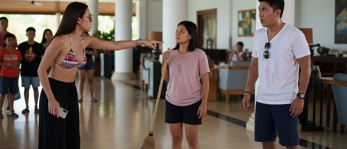 “Miss Nicole,” I said as I took off my shades. “I’m not a janitor. I’m the Owner of the resort you’re stepping on. The land you’re standing on, the water you’re drinking, and the air you’re breathing here… It’s all MINE.”