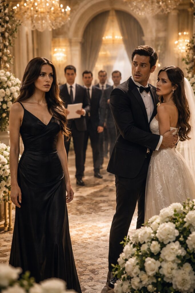 Napahinto siya. Ang mga mata niya’y naghalo ang takot, galit, at pagkabigla. Ang mga bisita ay nagmamasid sa bawat sandali, nakapikit at nakikipag-usap sa mga lihim na kwento sa likod ng kasal na ito.