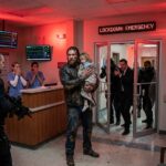 He grabbed a metal crash cart, swinging it with bone-rattling force into the nearest agent, chaos erupting as staff screamed and scattered, glass shattering, the sterile order of the ER collapsing into something primal and loud.
