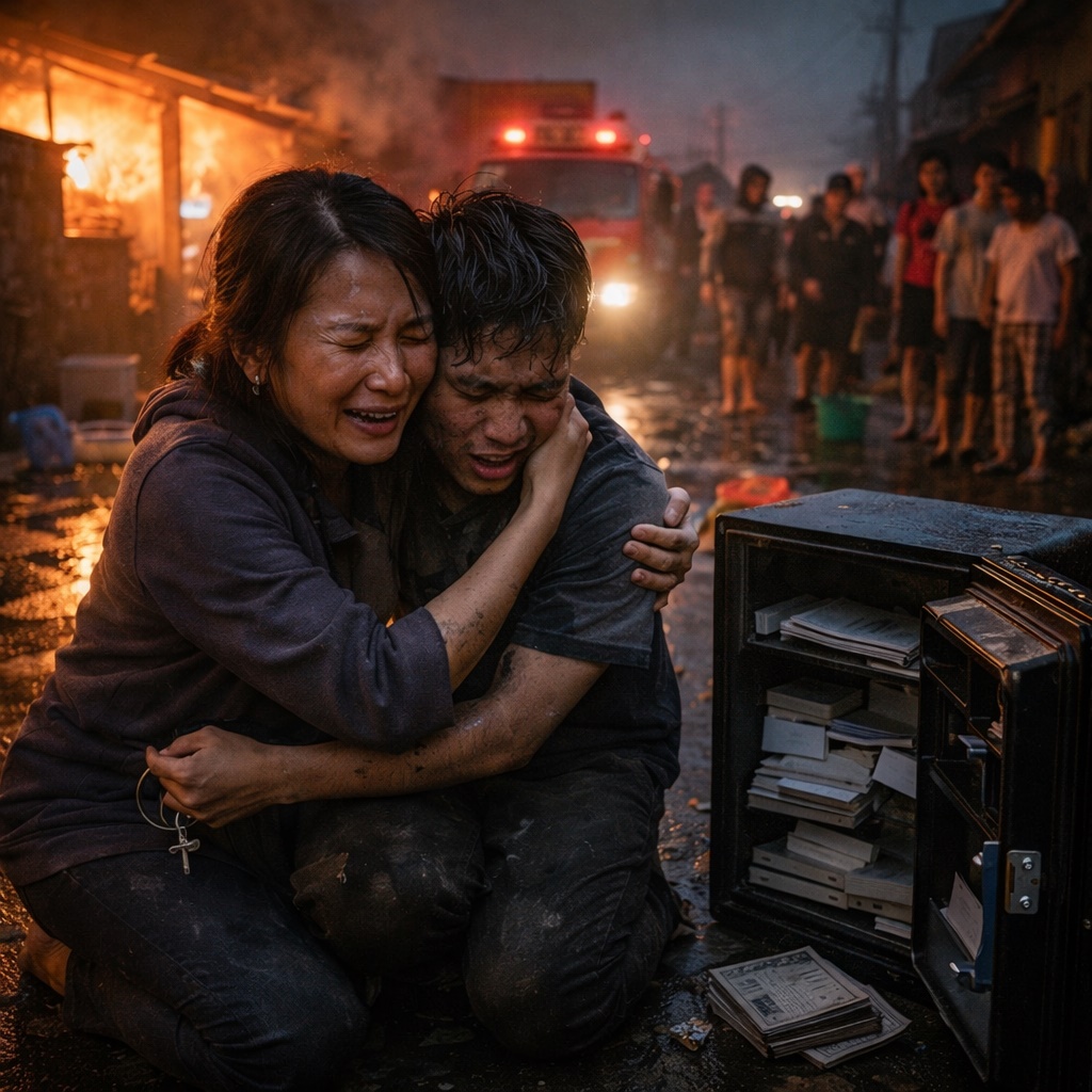 Sa likod nila, patuloy na lumalamon ang apoy sa mga natitirang dingding ng bahay.