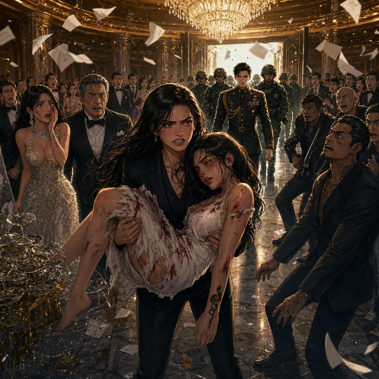 Biglang tumakbo si Bianca papunta kay Mira habang may hawak na basag na bote ng champagne.